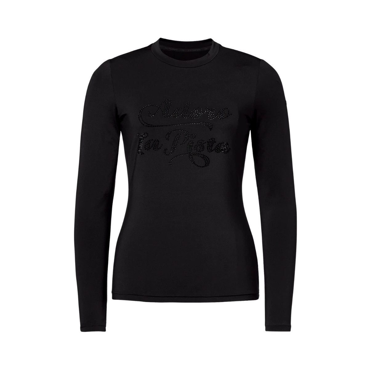 Extra: De trui is uitgevoerd met een subtiele ‘Adoro la pista’ strass-print op de borst en merklabels op de mouw en zijkant, wat een sportieve en modieuze uitstraling geeft.